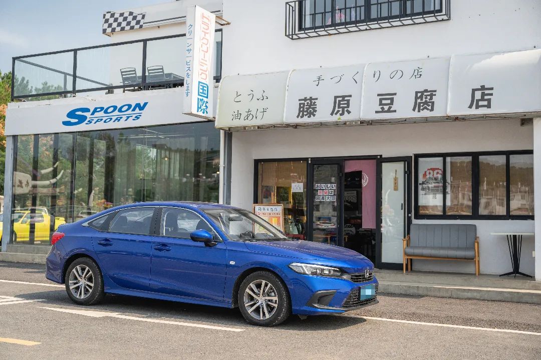 當(dāng)經(jīng)過了店員的同意后,終于可以放心大膽的合影了,說實(shí)話這個場景我夢見數(shù)次,當(dāng)我把思域安靜的停在藤原豆腐店的門口到和店員交流再到來拍照的過程中,雙手總是忍不住的在顫抖,可能因?yàn)闊釔郯?,讓我這顆時常冷靜的心變得再也無法冷靜下來,仿佛沉靜的湖水中落下石子,波瀾起伏內(nèi)心久久不能平靜。